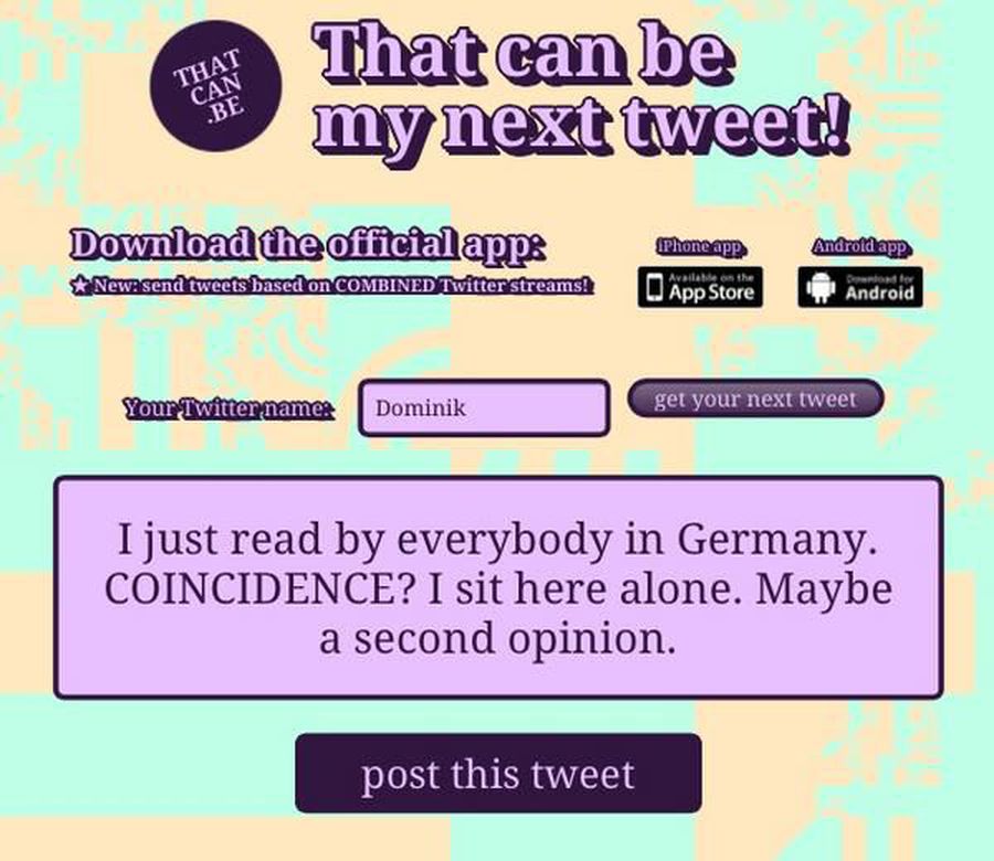 My twitter bios are a better source for “That can be my next tweet!” than my tweets.
